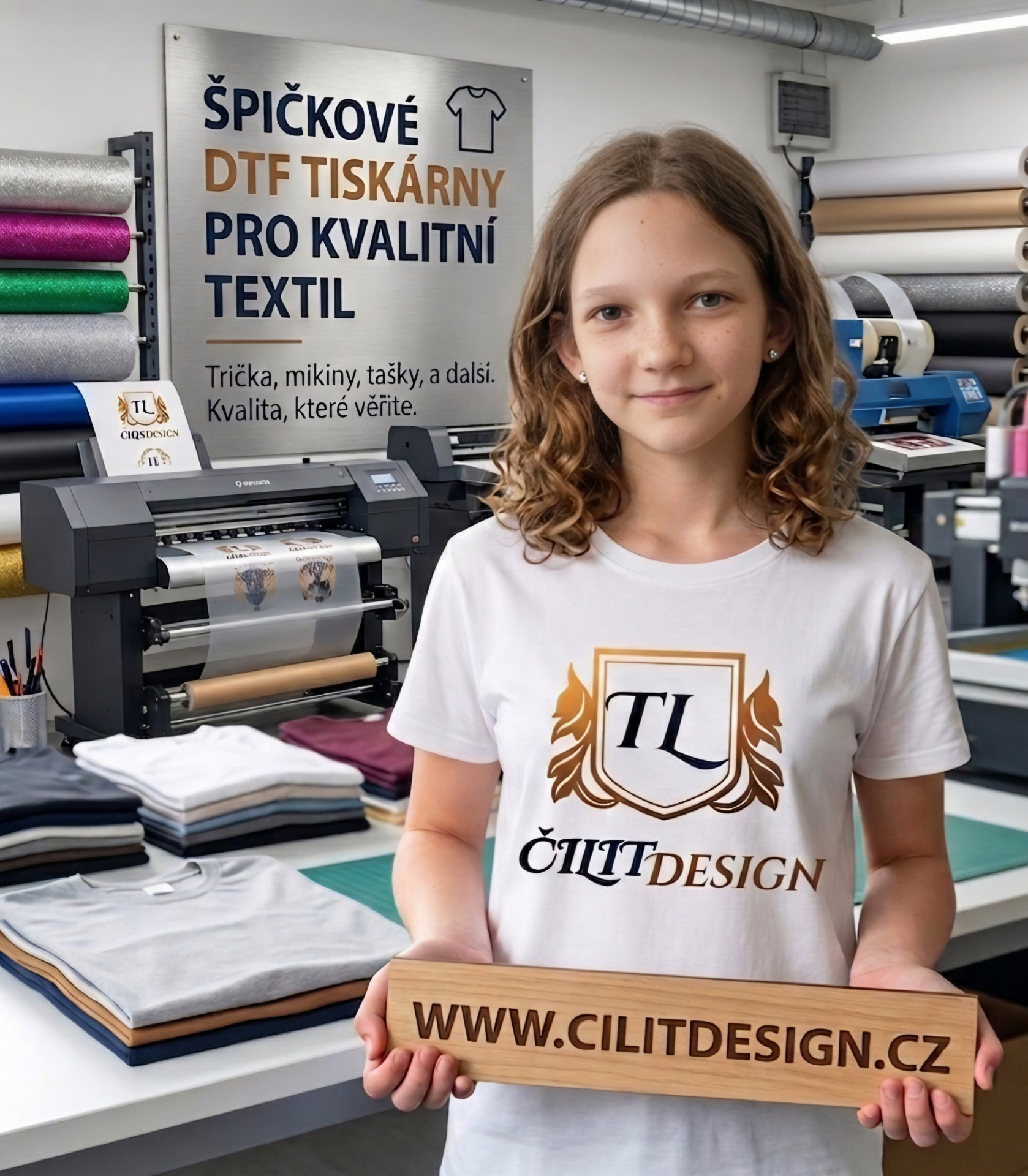 - Potisk textilu: Nabízíme potisk triček, mikin, tašek a dalších textilních výrobků dle vašich přání.